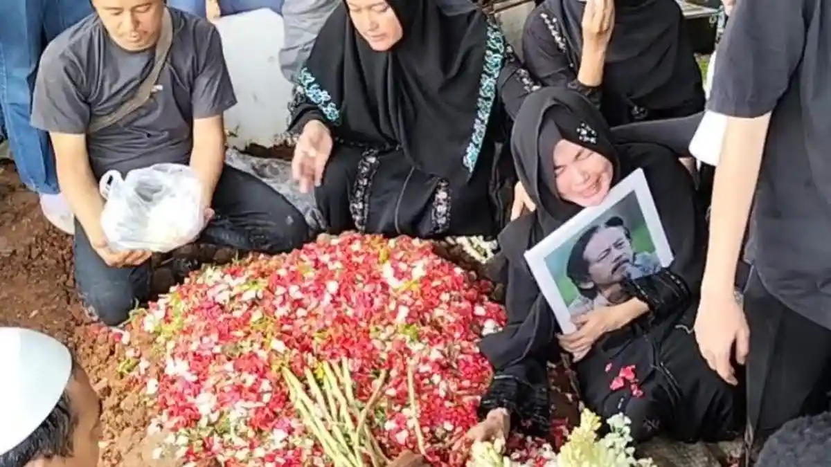 Rasa duka yang mendalam masih terlihat jelas pada Karina Ranau, saat ia mengantarkan jenazah suaminya, aktor Epy Kusnandar, ke tempat peristirahatan terakhir.